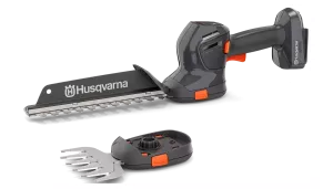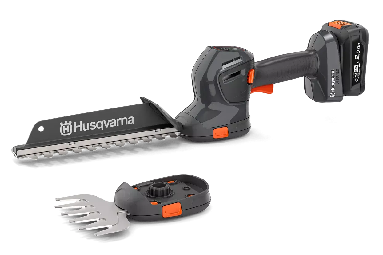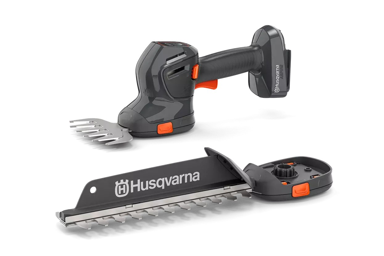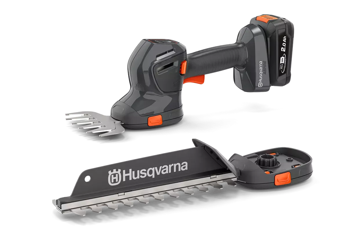 Switch between grass trimmer and hedge trimmer attachment without using tools.