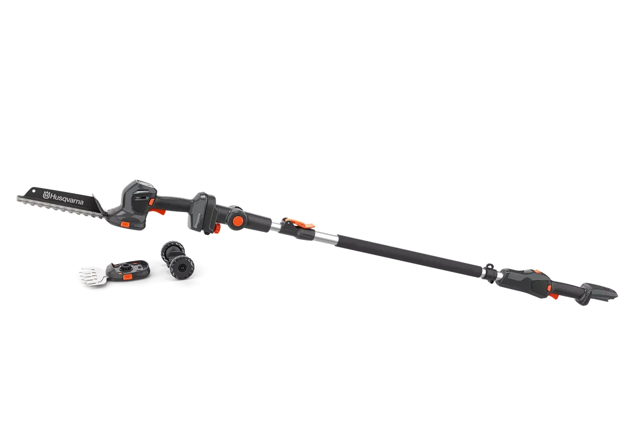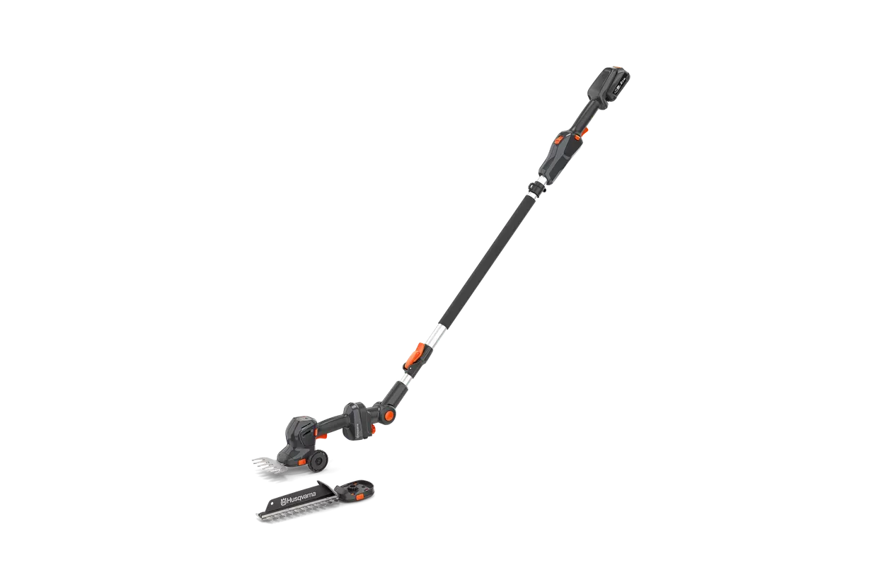 Attach the adjustable telescopic shaft to the Husqvarna Aspire™ Shrub Shear to extend your reach up to 3 meters. Between use, simply remove the lightweight shaft to conveniently hang on the wall or the Aspire™ Storage rail using the included, tailor-made wall hooks.