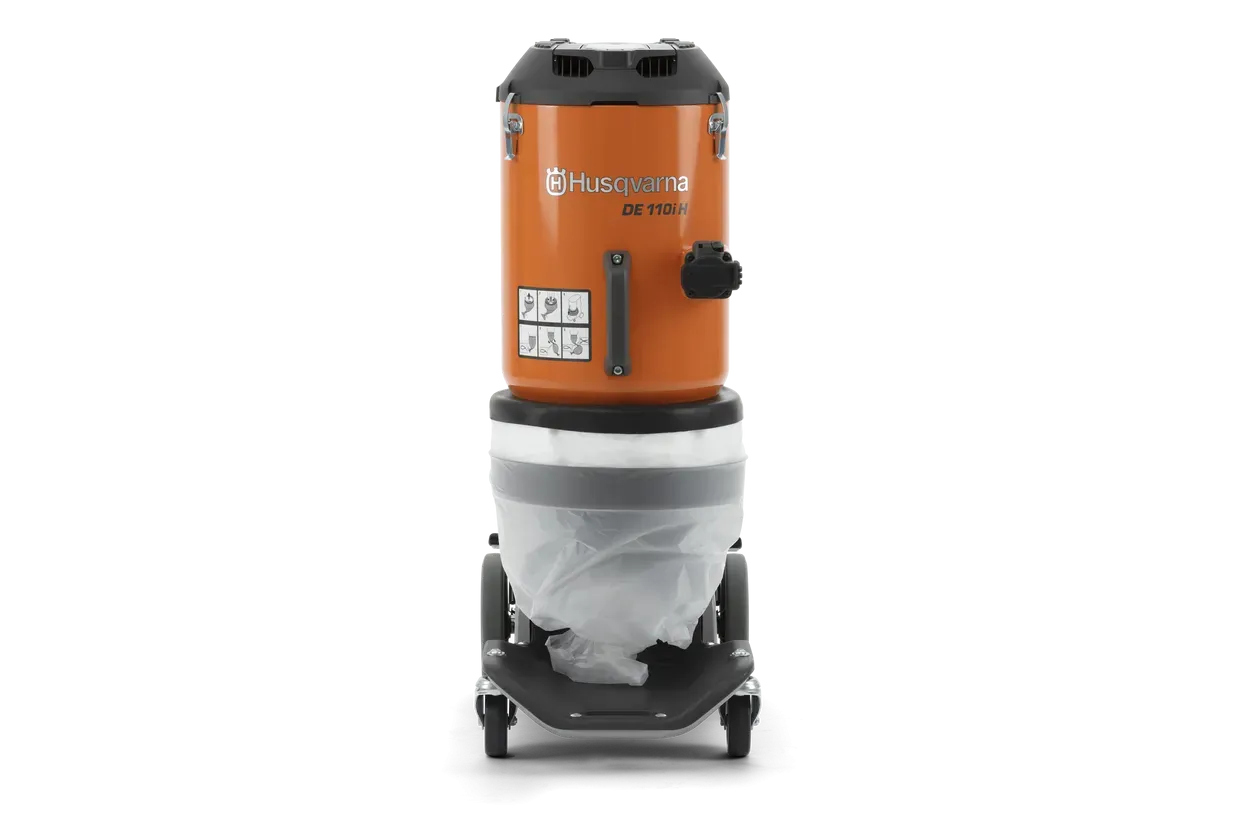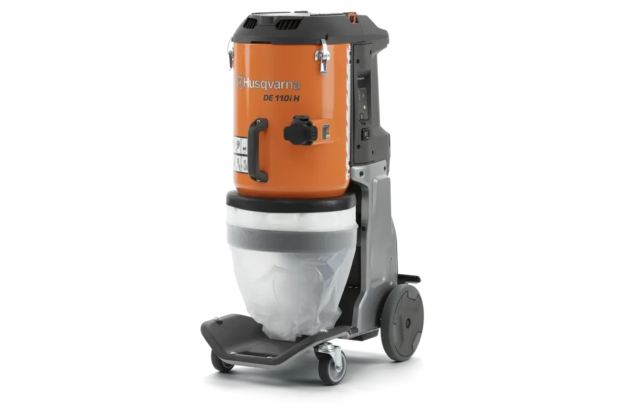 S težo le 26 kg in kompaktnimi dimenzijami (670 x 400 x 1000 mm) je DE 110i izjemno prenosen. Premišljene podrobnosti, kot so dvižne kljuke, integrirani nosilci za cevi in palice ter možnost vožnje na dveh kolesih, zagotavljajo enostavno manevriranje po delovišču. Napredni pritrditveni sistem Longopac® s pladnjem v obliki črke V omogoča hitro in čisto menjavo vrečk brez izpostavljenosti prahu.