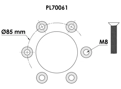 | Izvrtina plošče pri prirobnici | 60 mm / PL3012 / PL70140 |