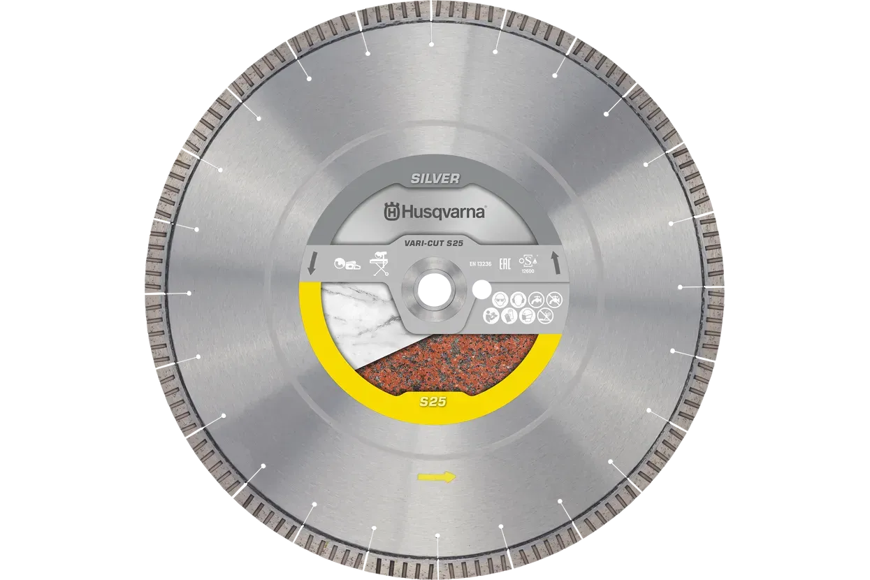 Diamantna rezalna plošča VARI-CUT™ S25 predstavlja vrhunsko rešitev za profesionalno rezanje trdega naravnega kamna, kot sta granit in marmor. Pripada sredinski, srebrni kategoriji Husqvarninih diamantnih rezil, ki združuje odlično zmogljivost in dolgo življenjsko dobo po optimalni ceni.