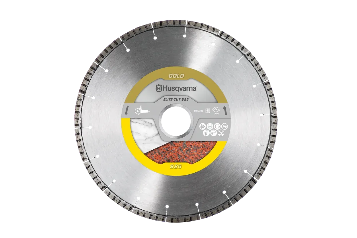 Diamantna rezalna plošča ELITE CUT S25 predstavlja vrhunsko orodje za profesionalne uporabnike in zahtevne domače mojstre, ki potrebujejo natančne in hitre reze v najtrših materialih. Ta zlata serija rezalnih plošč Husqvarna združuje inovativno tehnologijo in vrhunske materiale za zagotavljanje optimalnih rezultatov.
