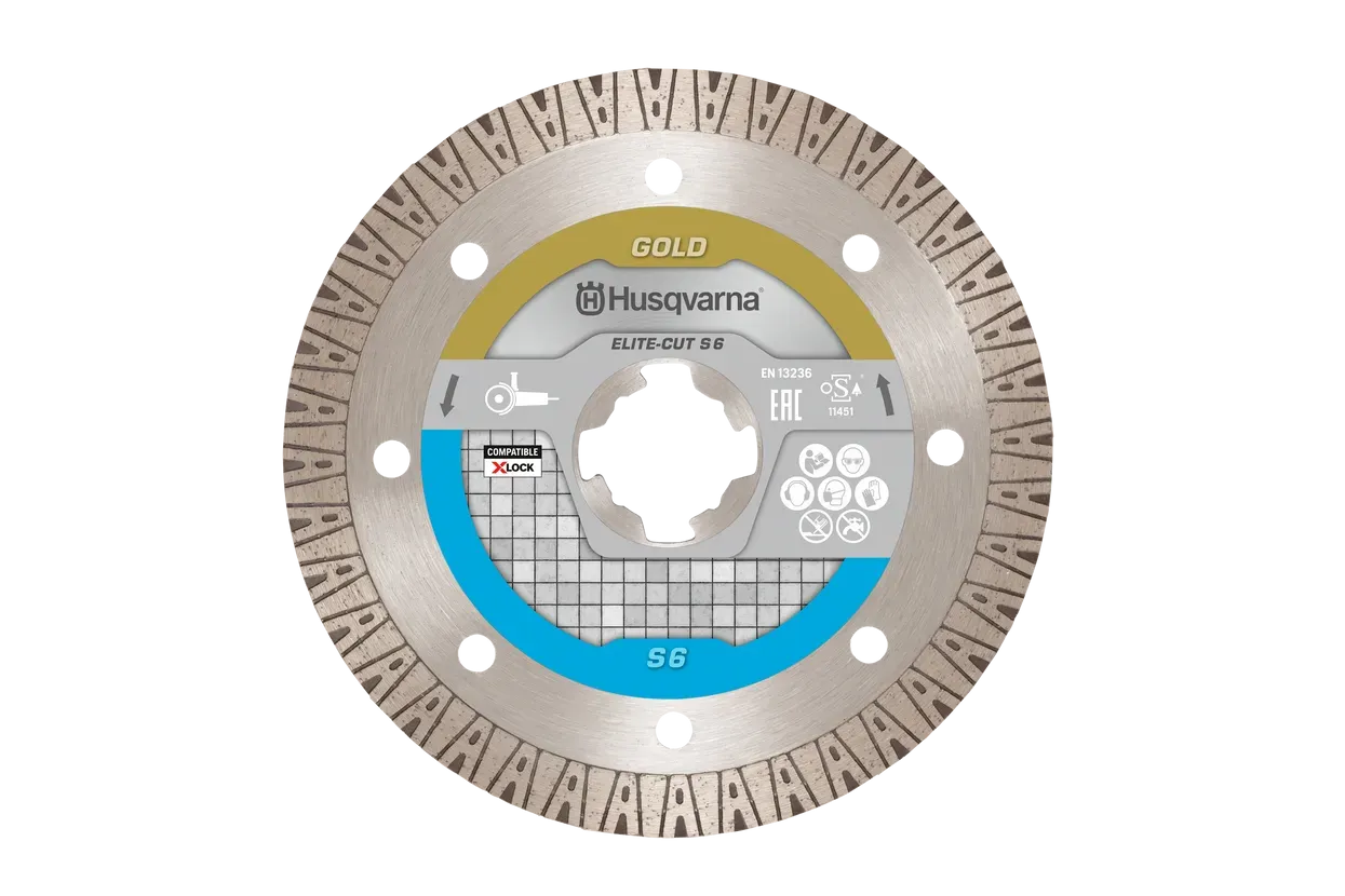 ELITE CUT S6 X-LOCK spada v zlati razred zmogljivosti, kar zagotavlja dolgotrajno uporabo in zanesljivo delovanje tudi pri najzahtevnejših projektih. Neprekinjeno rezilo z diamantnimi segmenti višine 10 mm in širine 1,4 mm omogoča izjemno natančno rezanje tudi najtrših materialov.