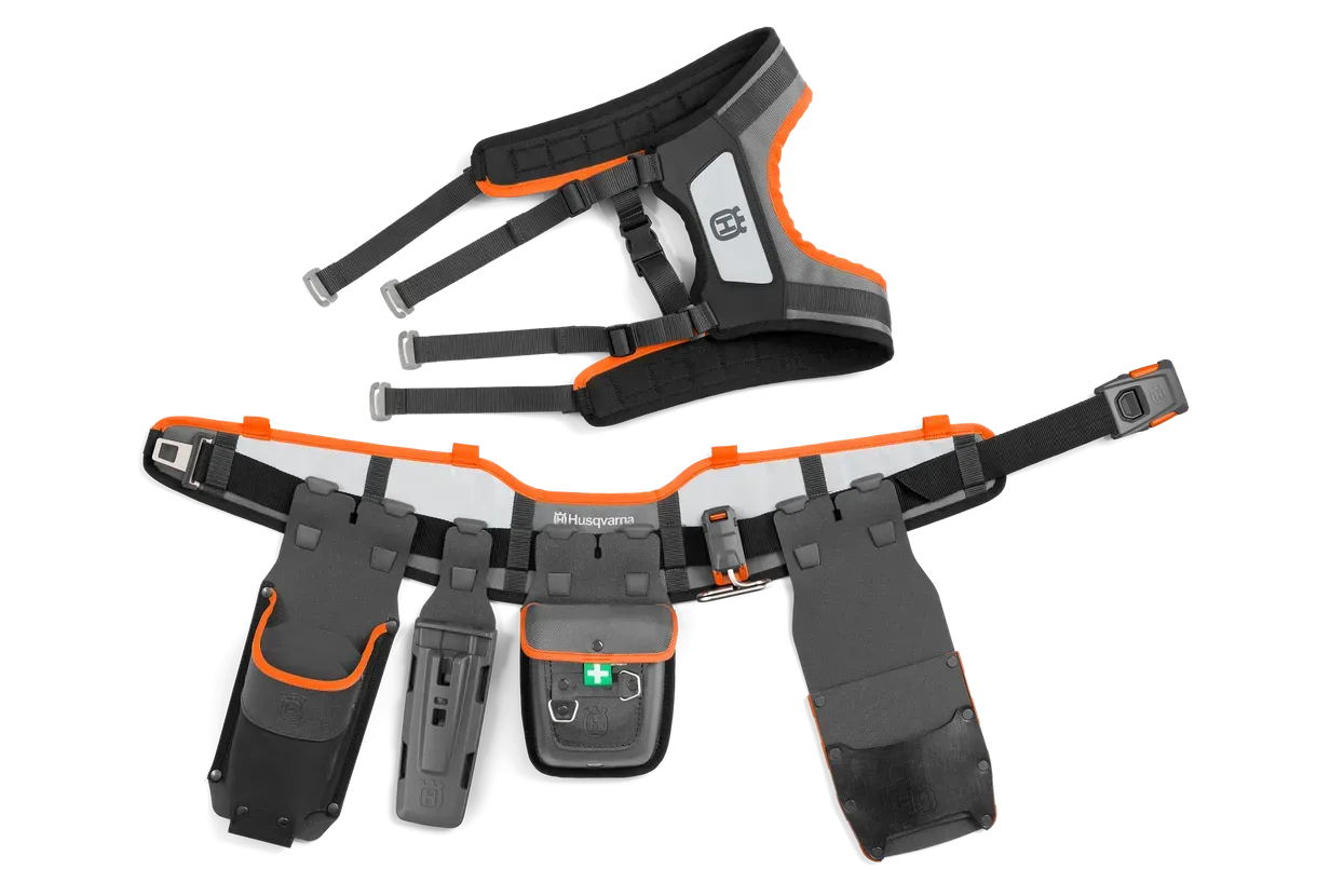 Prilagodljiv in ergonomski gozdarski pas za orodje z odlično porazdelitvijo teže in nastavljivim, enoročnim sproščanjem posebej razvito za delo v gozdarstvu. Intuitiven in enostaven za prilagajanje z enostavno pritrjenimi držali, žepi in pasovi. Vključeno v komplet. Pas za orodje, pasovi, klinasti žep, kombinirano ohišje s klinastim žepom, držalo za...
