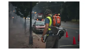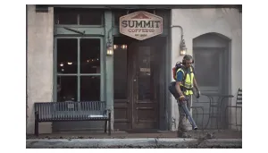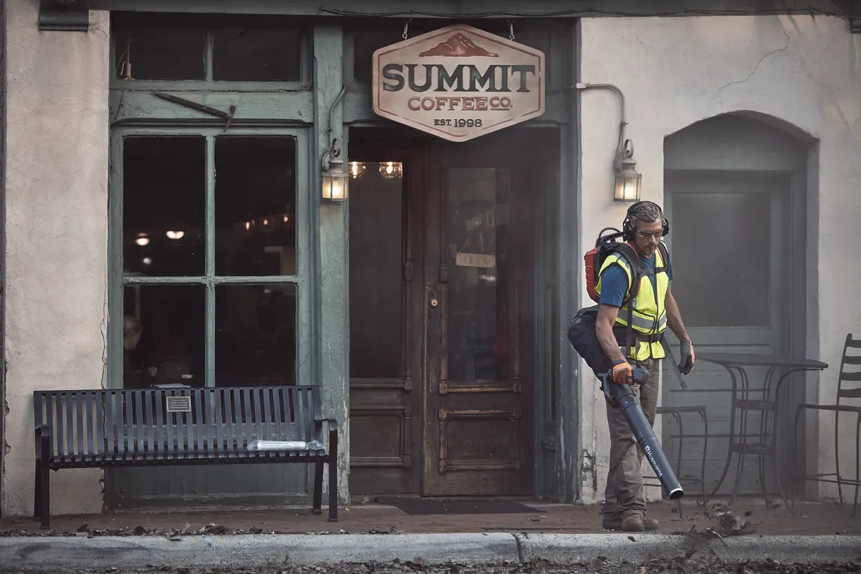 Pokrov skrije kable med ročaj in pihalnik. Kabel akumulatorskega nahrbtnika poteka v bližini pihalnika in je pritrjen s sponko.