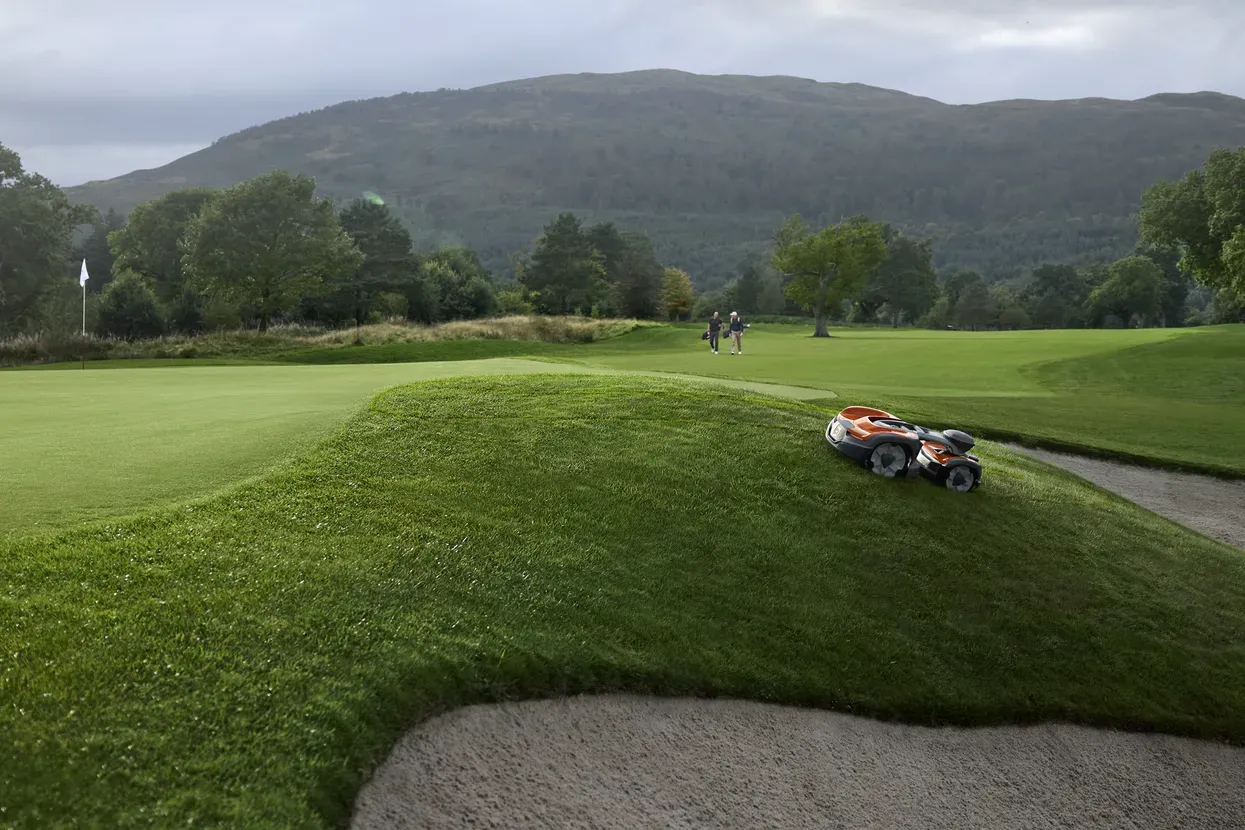 Automower® AWD z vsekolesnim pogonom za košnjo na najzahtevnejših površinah. Ker lahko kosi na strmini z naklonom do občudovanja vrednih 70 % (35°), zagotavlja popolne rezultate tudi na najzahtevnejših razgibanih zelenih površinah in pripomore izboljševanju varnosti delovnega okolja.