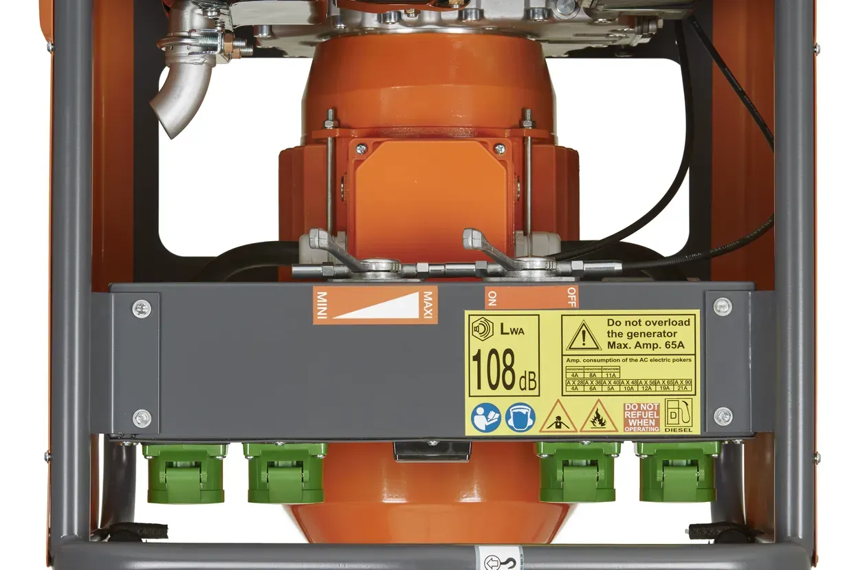 Srce naprave predstavlja kakovosten gumijasto vpet dizelski motor Lombardini, ki zagotavlja zanesljivo delovanje tudi v najtežjih delovnih pogojih. Pretvornik CFD 67 deluje s frekvenco 200 Hz in zagotavlja nazivni tok 65 A pri 42 V in 3-faznem napajanju, kar omogoča nemoteno napajanje več vibratorjev hkrati.