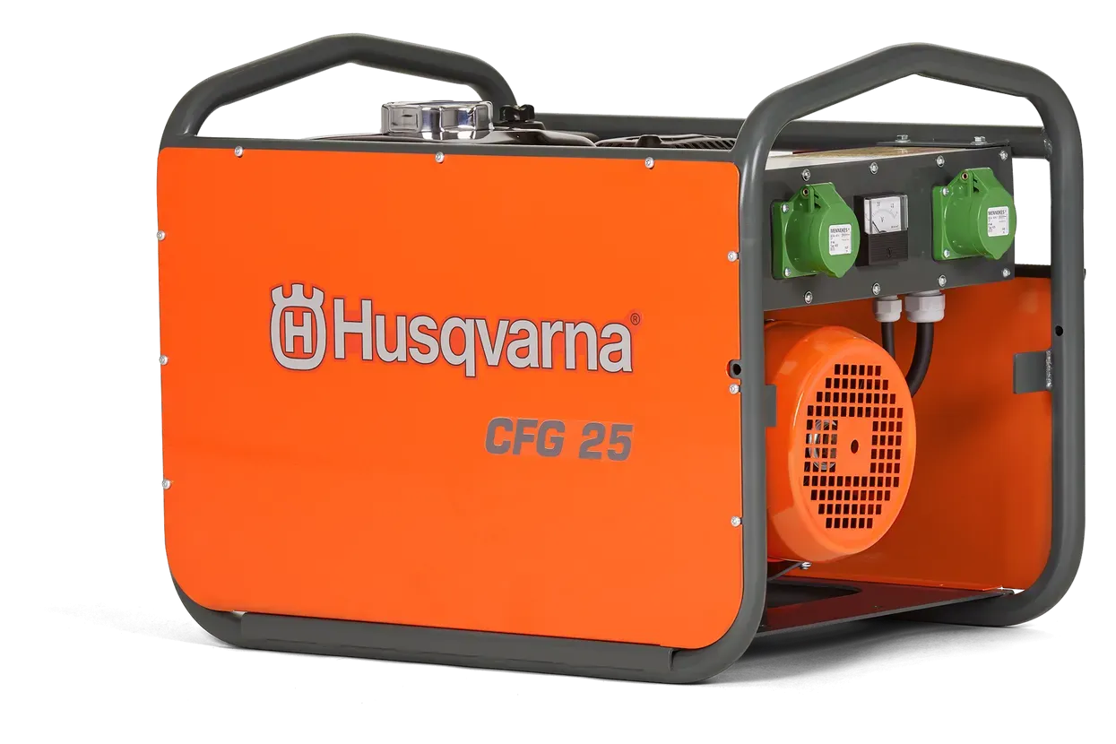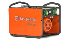 Husqvarna CFG 25 je zmogljiv frekvenčni pretvornik, zasnovan za zahtevne gradbene in industrijske aplikacije. Ta model ponuja zanesljivo napajanje z izhodno frekvenco 200 Hz, kar omogoča optimalno delovanje specialne opreme in orodij.
