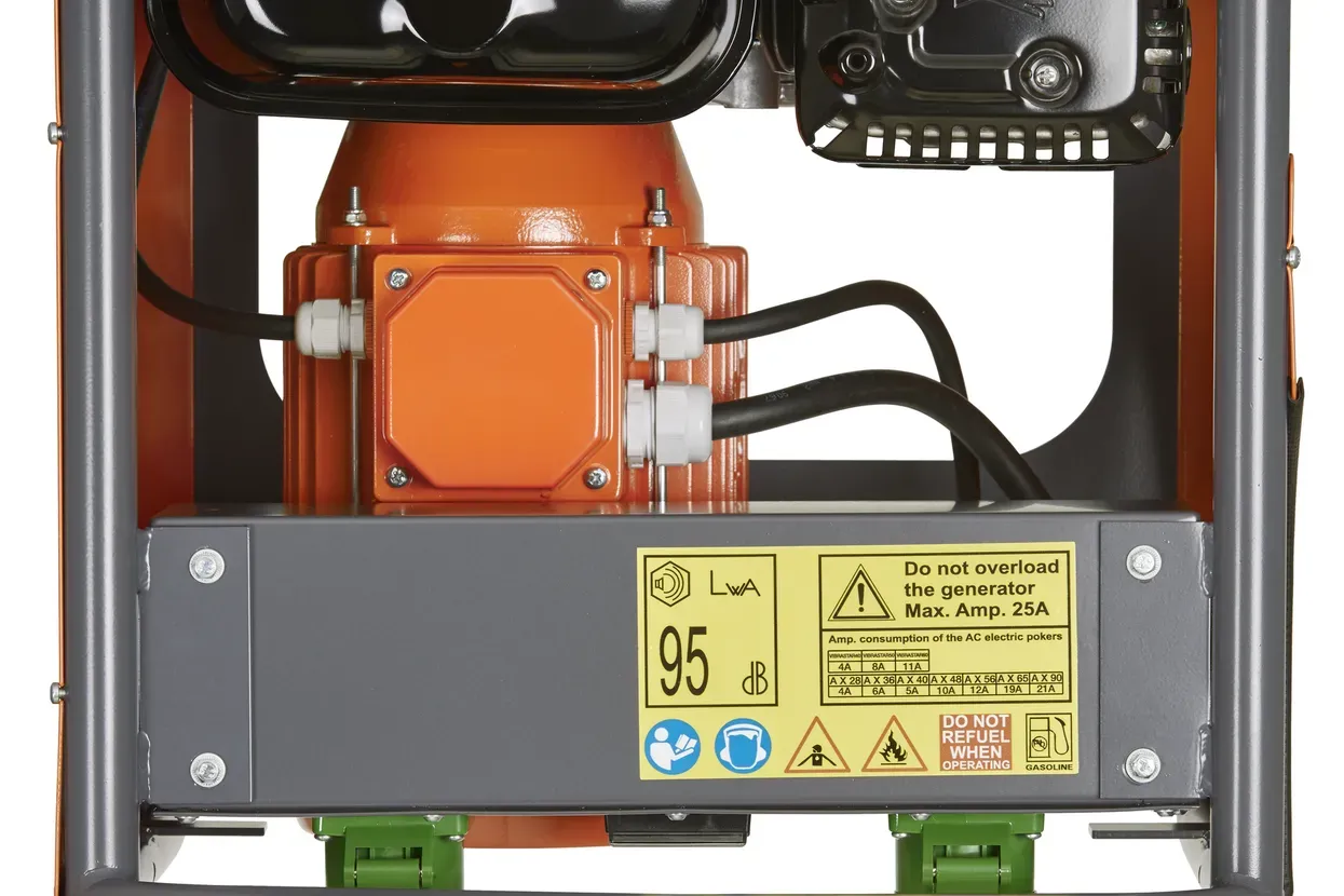 CFG 25 je opremljen s celovitim sistemom za nadzor napetosti, vključno z vgrajenim voltmetrom za spremljanje izhodne napetosti v realnem času. Zaščita pred prenapetostjo in kontrole za izklop vžiga zagotavljajo varnost priključenih naprav in uporabnika. Varnostni sistemi preprečujejo poškodbe dragocene opreme zaradi nihanj v napajanju.