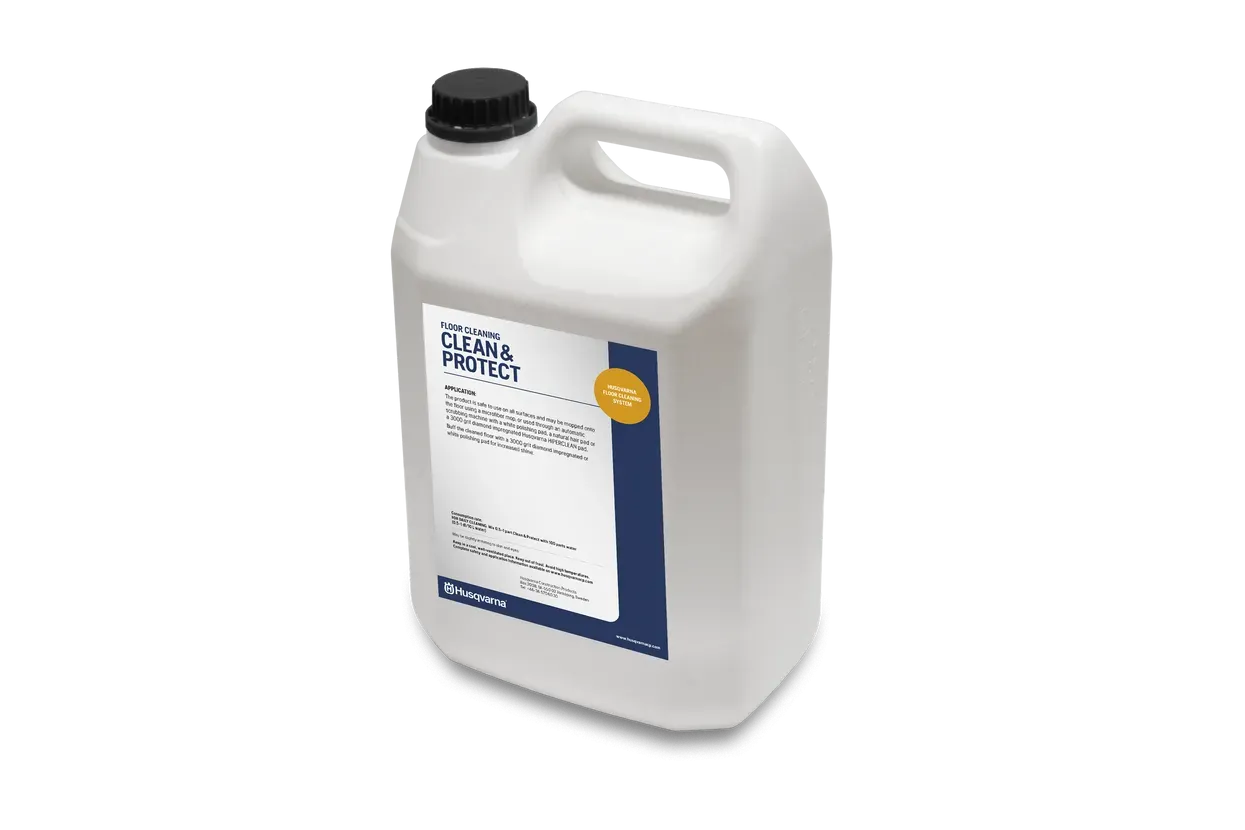 Husqvarna CLEAN & PROTECT je posebej razvita naravna čistilna in negovalna raztopina, namenjena betonskim tlem in površinam iz naravnega kamna. Ta 5-litrska tekočina predstavlja celovito rešitev za vzdrževanje in dolgotrajno zaščito vaših površin.