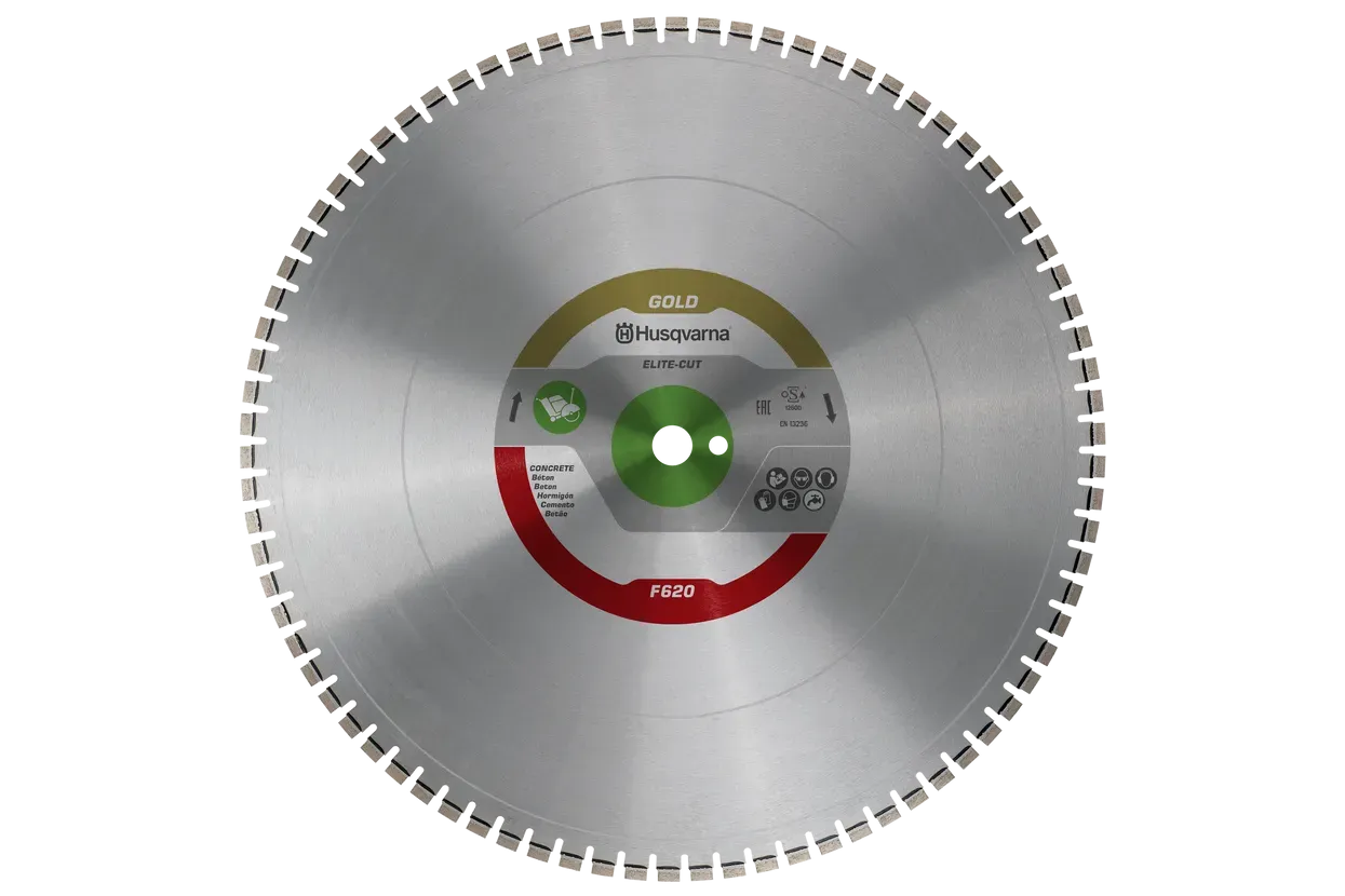 Husqvarna ELITE-CUT™ F620 predstavlja najnovejšo generacijo diamantnih rezil, posebej zasnovanih za hitro in učinkovito rezanje betona. Na voljo v različnih premerih (500 mm, 550 mm, 600 mm, 700 mm in 800 mm) z vpenjalno osjo 25,4 mm, kar omogoča prilagodljivost pri različnih projektih.