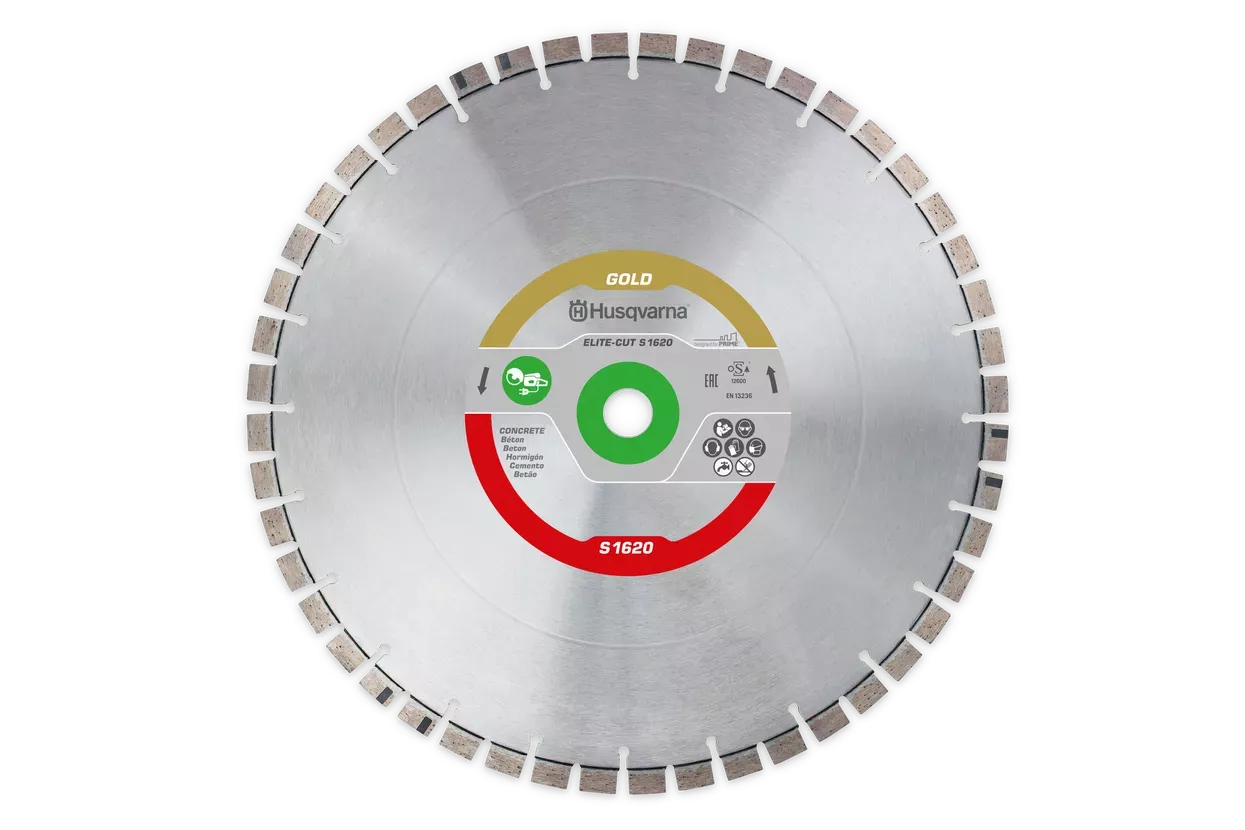 Napredna rezna plošča Husqvarna ELITE-CUT™ S1620 je zasnovana za zahtevne profesionalne aplikacije rezanja betona. S premerom 415 mm in modulabilno konfiguracijo predstavlja idealno rešitev za rezanje trde do srednje trde betonske konstrukcije.