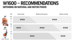 Vsa rezila W1610 so zasnovana za mokro rezanje, kar omogoča učinkovito hlajenje in podaljša življenjsko dobo rezila. Posebne različice s priponko "WS" v oznaki imajo tudi tehnologijo tihega rezanja, ki znatno zmanjša hrup med delovanjem - idealno za uporabo v urbanih okoljih ali zaprtih prostorih.