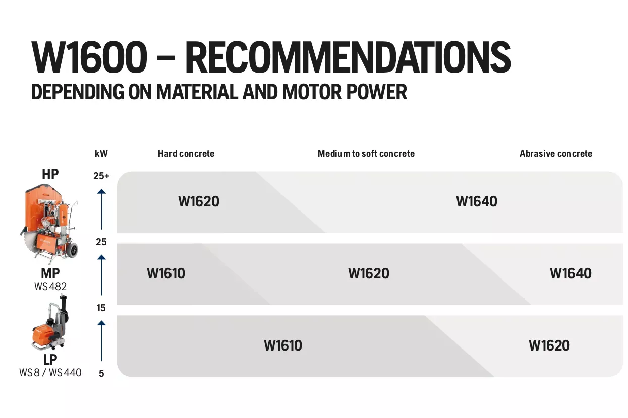 Husqvarna ELITE-CUT™ W1610 predstavlja najnovejšo generacijo diamantnih rezil, zasnovanih posebej za rezanje trdega do srednje trdega betona z optimalno učinkovitostjo. Ta serija diamantnih rezil ponuja izjemno zmogljivost in dolgo življenjsko dobo v zahtevnih gradbenih pogojih.