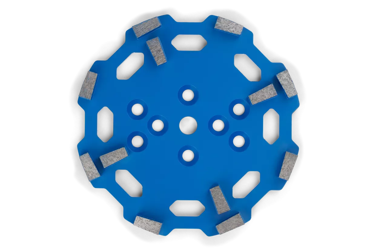ELITE-GRIND™ PREMIUM + S je napredna brusionica, специално oblikovana za zahtevne naloge brušenja in poliranja mehko stisnjenih betonov. S premerom 250 mm in 12 segmenti, ta modra brusionica zagotavlja izjemno učinkovitost in natančnost pri vsakem projektu.