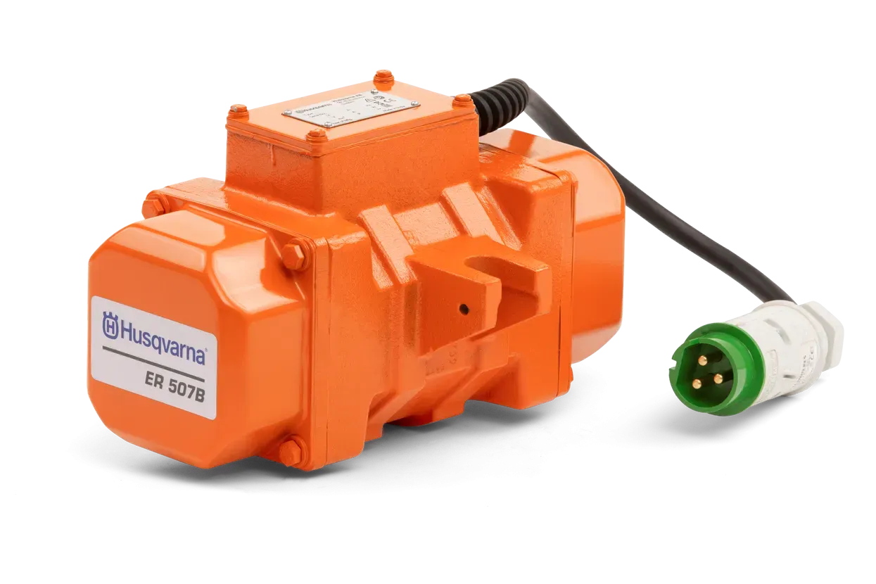 Husqvarna ER 507 B je zmogljiv zunanji vibrator, zasnovan za profesionalno uporabo pri betonskih delih, kjer je potrebna optimalna zgoščenost materiala in brezhibna površinska obdelava. Deluje na 42 V trifazno napetost s frekvenco 200 Hz, kar zagotavlja zanesljivo in učinkovito delovanje tudi v najzahtevnejših pogojih.