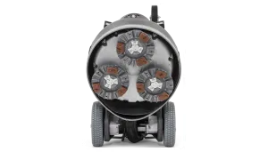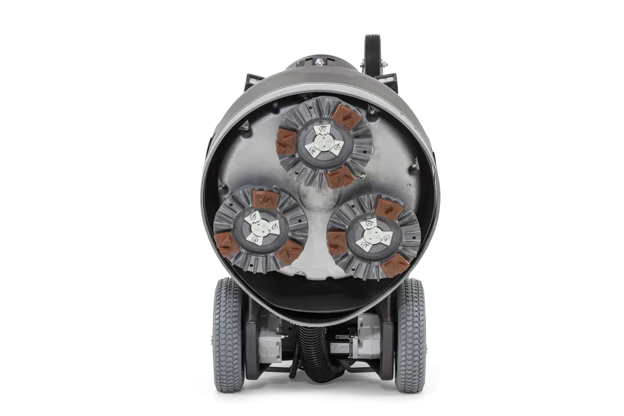 Zatesnjena brusilna glava s servisnim intervalom 1000 ur ter zaščitena elektronika z zunanjim hlajenjem preprečujeta vdor prahu in vode ter zagotavljata dolgo življenjsko dobo stroja. Vgrajena baterija z integriranim polnilnikom omogoča, da je stroj vedno pripravljen za uporabo, medtem ko ergonomsko zasnovano transportno kolo olajša premikanje tega 591 kg težkega brusilnika.
