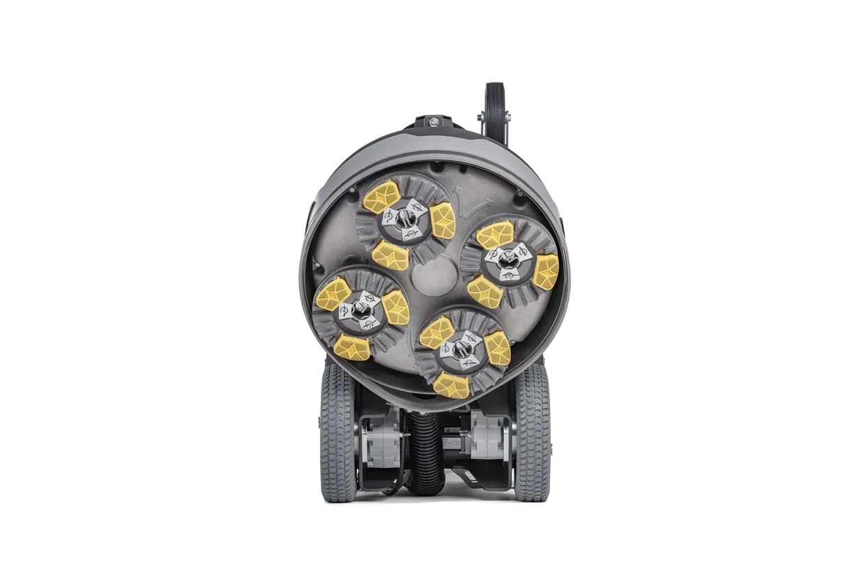 Sistem EZchange™ omogoča hitro in preprosto menjavo diamantnih orodij, držala orodij za pretok zraka pa ustvarjajo nadzorovan pretok zraka okoli orodij, kar dodatno ohlaja diamante in usmerja prah proti ekstraktorju. Robusten plavajoči jekleni pokrov samodejno sledi površini tal za optimalno pobiranje prahu brez potrebe po ročnem prilagajanju.