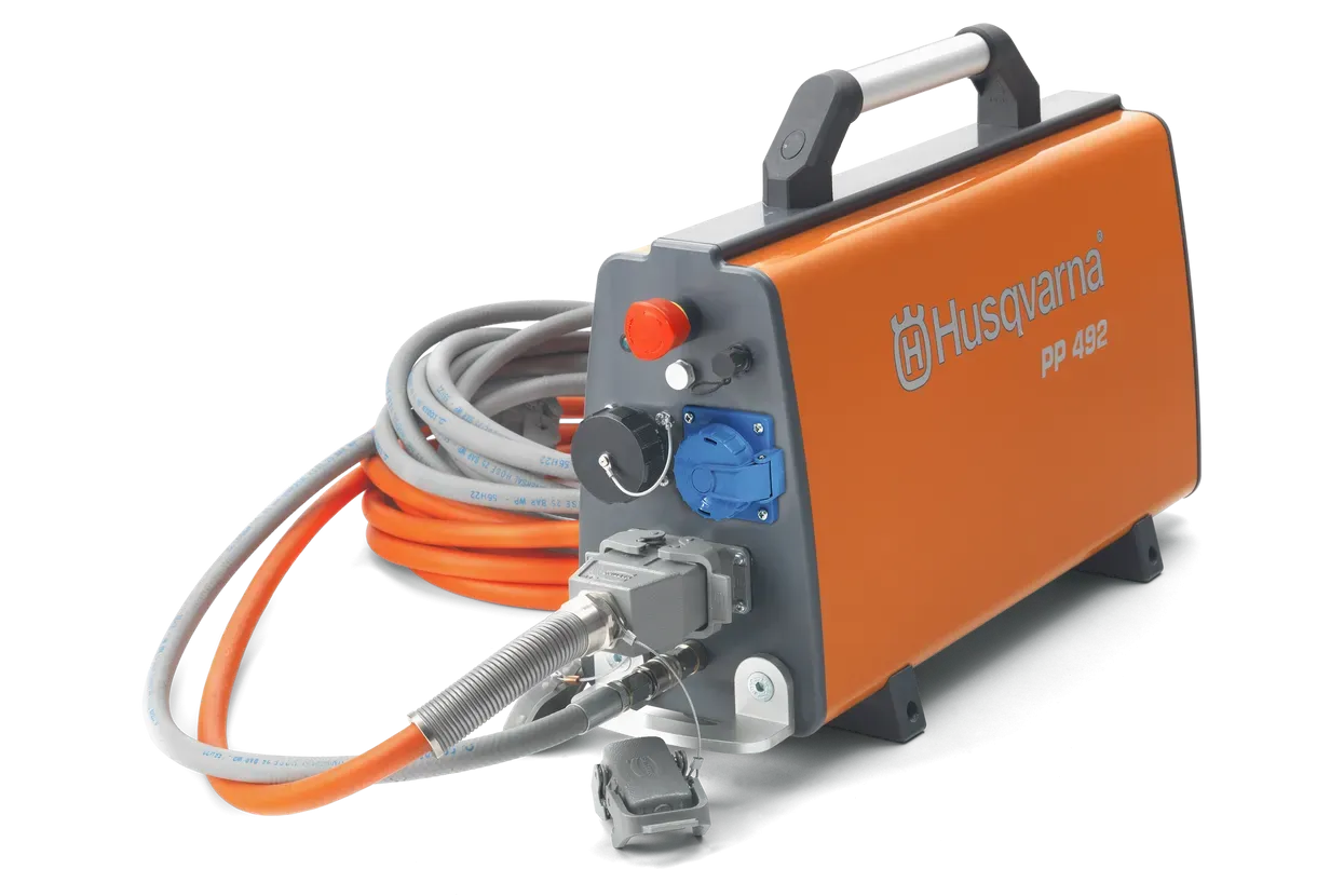 Ključna prednost PP 492 je njegova sposobnost poganjanja več različnih Husqvarna PRIME™ orodij, kar bistveno poveča vašo učinkovitost na gradbišču. Z eno napajalno enoto lahko upravljate različno ročno orodje in vrtalne motorje, kar pomeni manj opreme za transport in hitrejšo postavitev delovišča.