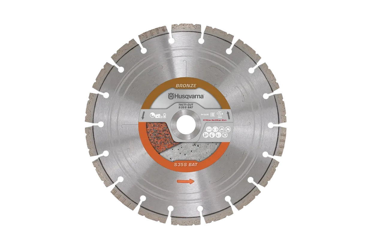 Husqvarna TACTI-CUT™ S35S BAT je visokokakovostna segmentna rezalna plošča s premerom 250 mm, zasnovana za natančno in učinkovito rezanje različnih materialov. S svojim univerzalnim dizajnom premera 250 mm in vpenjalno osjo 25,4 mm je idealna izbira za profesionalce in zahtevnejše domače uporabnike.