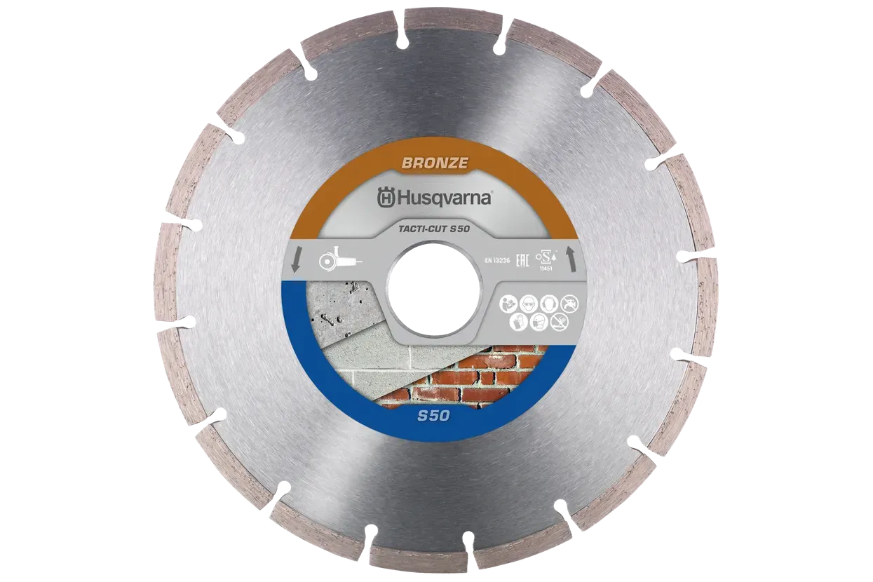 TACTI-CUT S50 je na voljo v različnih premerih (115, 125, 150, 180 in 230 mm), vse z standardnim premerom vpenjalne osi 22,23 mm. Segmentirana zasnova rezila s 10 mm visokimi segmenti zagotavlja učinkovito hlajenje in odvajanje prahu pri suhem rezanju.