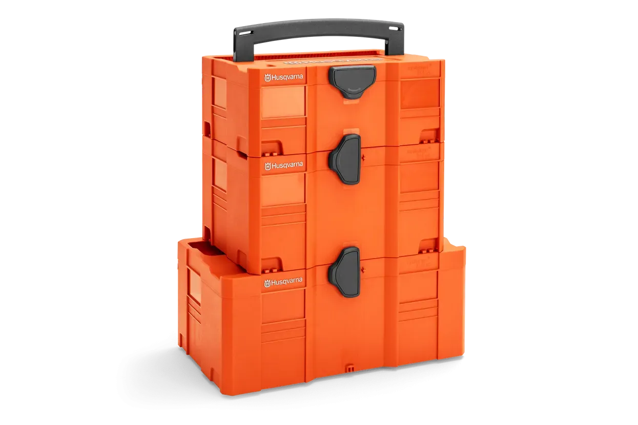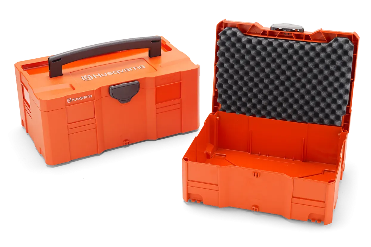 Zaboj za varen transport in shranjevanje akumulatorjev, polnilcev in ostale dodatne opreme Husqvarna. popolnoma kompatibilen s Systainer-Box-Sistemom.