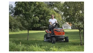 Udoben položaj za vožnjo in upravljanje z nastavljivim sedežem in lahko dostopnimi upravljalnimi elementi. Vzmeten sistem za nastavitev višine košnje omogoča lažjo nastavitev želene višine.