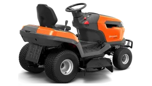 One open storage compartment on the left and one at the back with a lid for easy access to equipment during mowing.