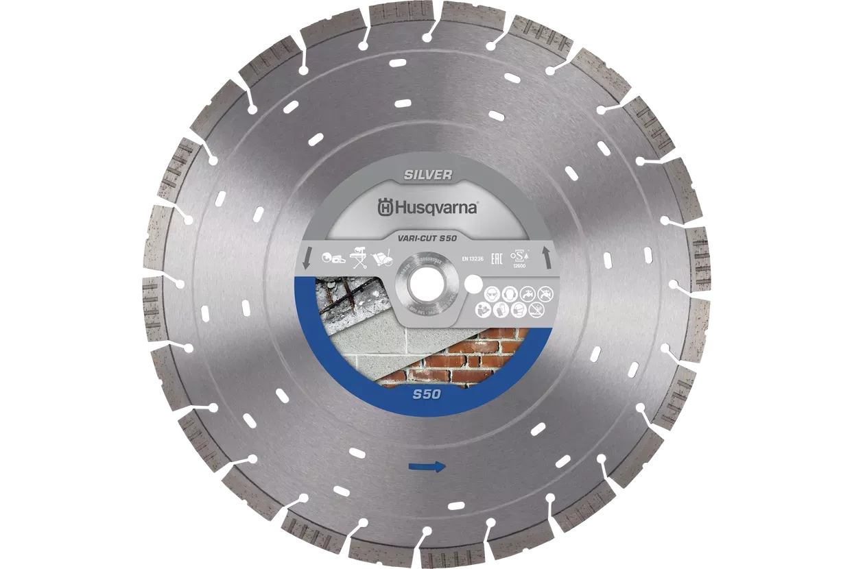 Husqvarna VARI-CUT™ S50 predstavlja vrhunsko diamantno rezilo, zasnovano za vrhunsko zmogljivost in vsestranskost pri rezanju različnih gradbenih materialov. Ta srebrna serija rezil je na voljo v različnih premerih (300 mm, 350 mm in 400 mm) in z različnimi premeri vpenjalne osi (20 mm ali 25,4/20 mm), kar omogoča široko združljivost z različnimi stroji.