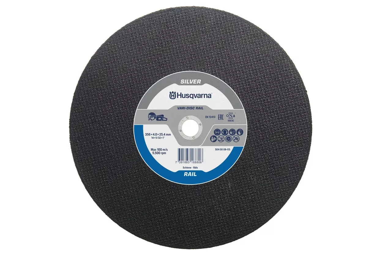 Husqvarna VARI-DISC™ RAIL je vrhunski abrazivni disk, posebej zasnovan za natančno in učinkovito rezanje železniških tirnic. Na voljo v dveh velikostih premera - 350 mm in 400 mm, s širino segmenta 4 mm - kar omogoča prilagoditev različnim zahtevam rezanja.