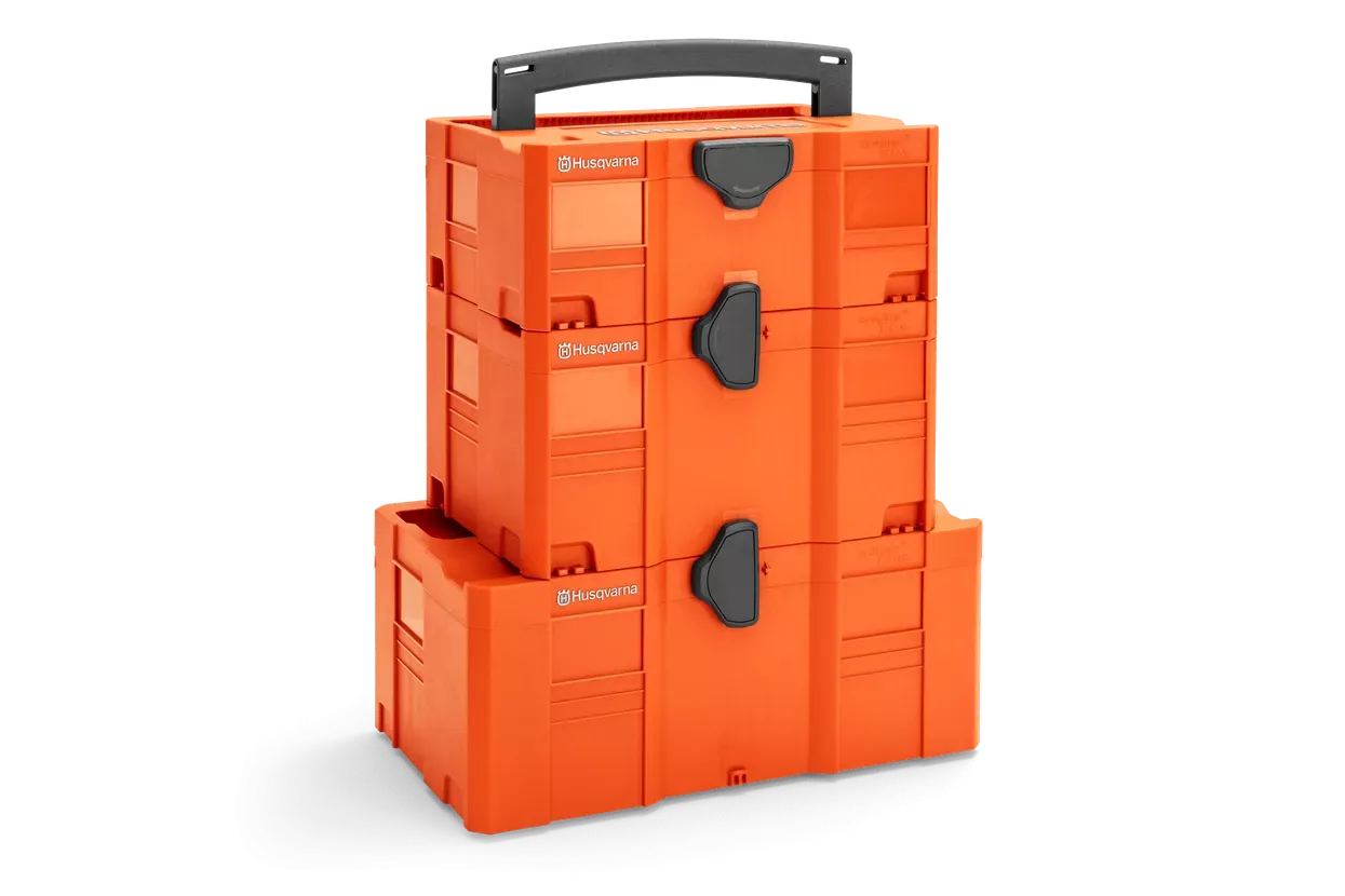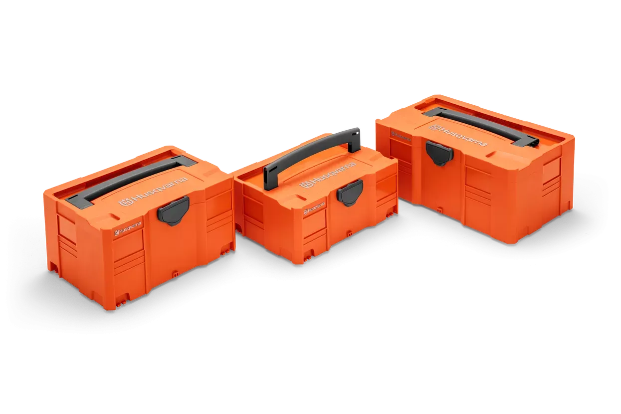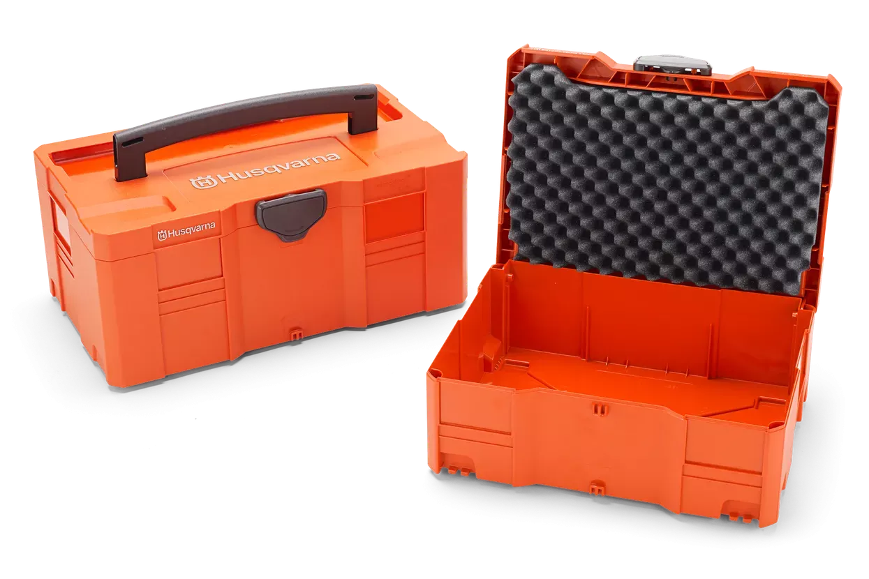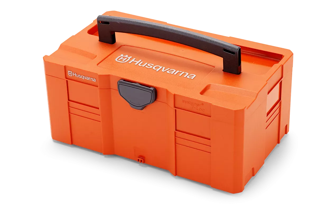 Zaboj za varen transport in shranjevanje nahrbtnih akumulatorjev, polnilcev in ostale dodatne opreme Husqvarna. popolnoma kompatibilen s Systainer-Box-Sistemom.