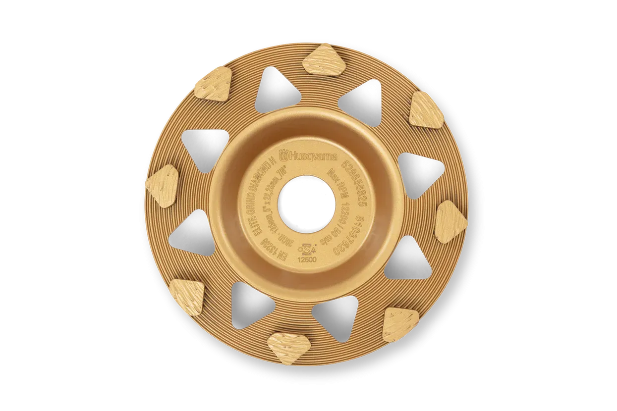ELITE-GRIND STAR H se ponaša z napredno diamantno tehnologijo, ki zagotavlja optimalno ravnovesje med hitrostjo brušenja in življenjsko dobo orodja. Posebna oblika Husqvarninih segmentov optimizira število aktivnih diamantov, kar prinaša izjemno zmogljivost pri delu z zahtevnimi površinami. Sistem suhega brušenja omogoča hitrejše delo in podaljšano življenjsko dobo orodja, kar zagotavlja visoko učinkovitost in manj zastojev.