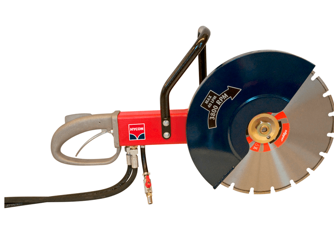 Zagotavljanje brez poškodb operaterja. Hidravlična diamantna žaga HYCON se lahko uporablja za horizontalno in navpično rezanje.