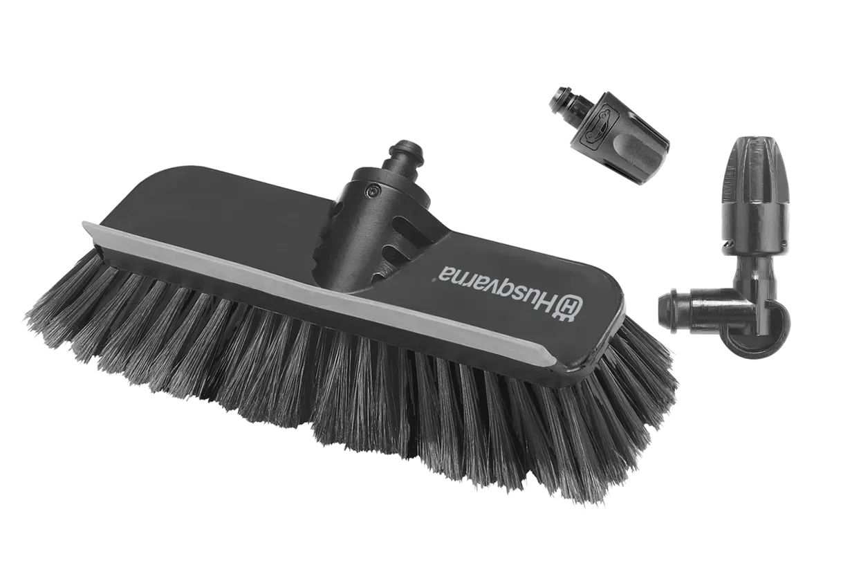 Set za čiščenje vozil sestoji iz šobe s širokim curkom za nežno čiščenje občutljivih površin, kotne šobe za čiščenje težko dostopnih površin in pralne krtače z otiralnikom.