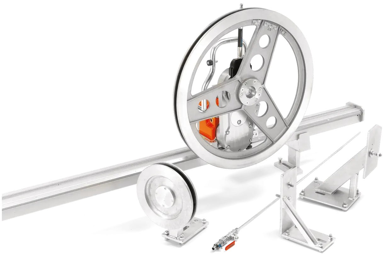 Komplet za pretvorbo je zasnovan za hitro in enostavno namestitev na obstoječe žične žage. Vse potrebne komponente so vključene v paket, kar omogoča takojšnjo nadgradnjo vašega orodja brez potrebe po dodatnih delih ali specialnem orodju.