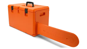 Robusten in priročen kovček za motorno žago, maziva in drug pribor.