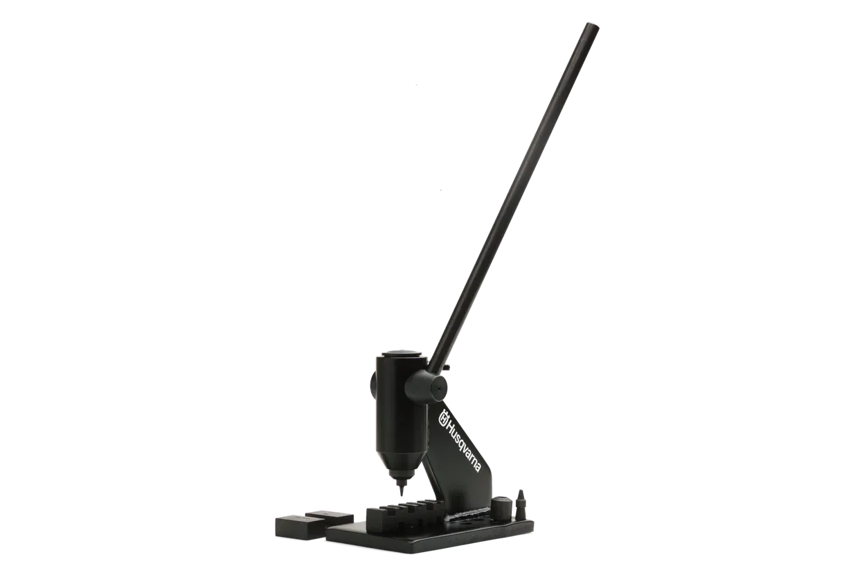 Namizna naprava za razkovičenje verige za uporabo v delavnicah. Naprava ima zelo lahek prenos preko vzvodovja in poseben nastavek za razkovičenje konice meča motorne žage. Varjena jeklena konstrrukcija.