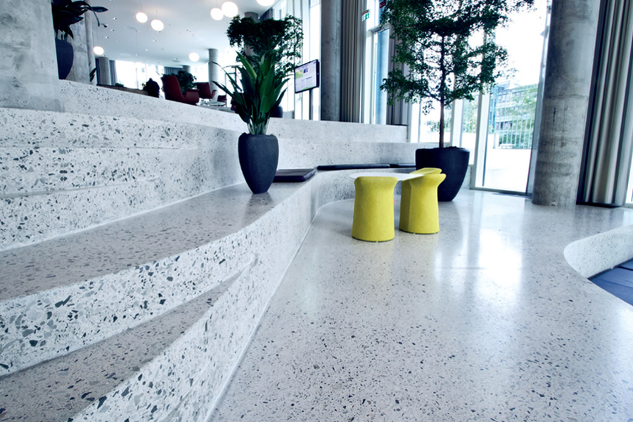 Poliran beton postaja standard v industrijskih halah, trgovskih centrih in sodobni arhitekturi. Gre za postopek, ki združuje mehansko obdelavo in kemično utrjevanje površine.