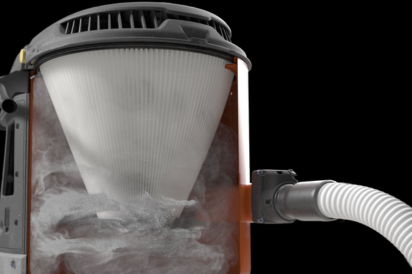 Napredne tehnologije, kot sta Auto-Pulse in večstopenjski filtracijski sistem, omogočajo neprekinjeno delovanje brez padca zmogljivosti. To pomeni večjo produktivnost na delovišču, manj prekinitev ter nižje obratovalne stroške. Dodatno varnost in enostavno rokovanje zagotavlja sistem zbiranja prahu Longopac®, ki omogoča menjavo vreč brez stika s prahom.