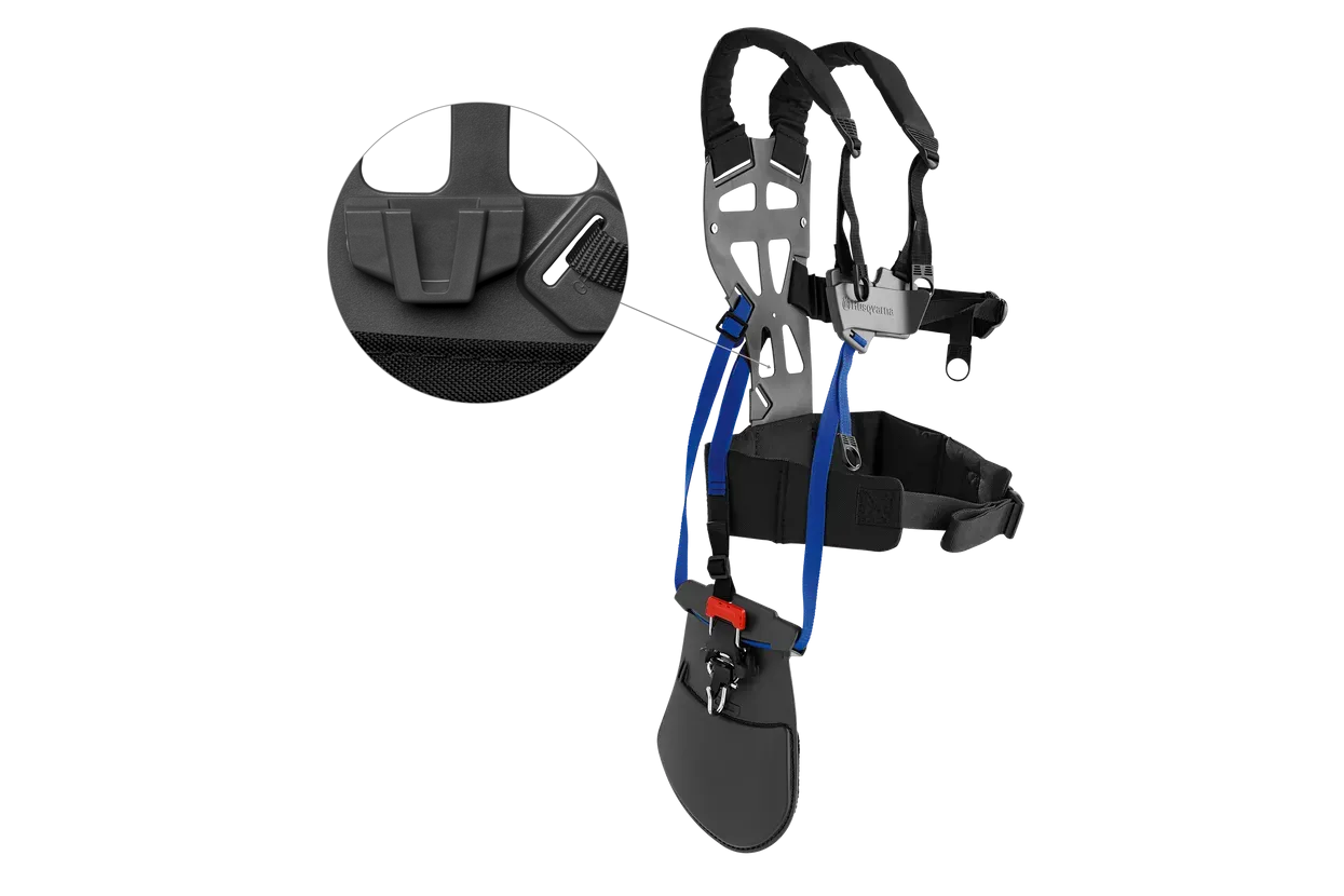 Ta postroj zagotavlja veliko razbremenitev zgornjega dela telesa in rok zaradi odlične porazdelitve teže med rameni, med prsnim košem in hrbtom ter od ramen do bokov. Opremljen je z nastavkom nosilca akumulatorja, tako da lahko preprosto prenesete en dodaten akumulator.