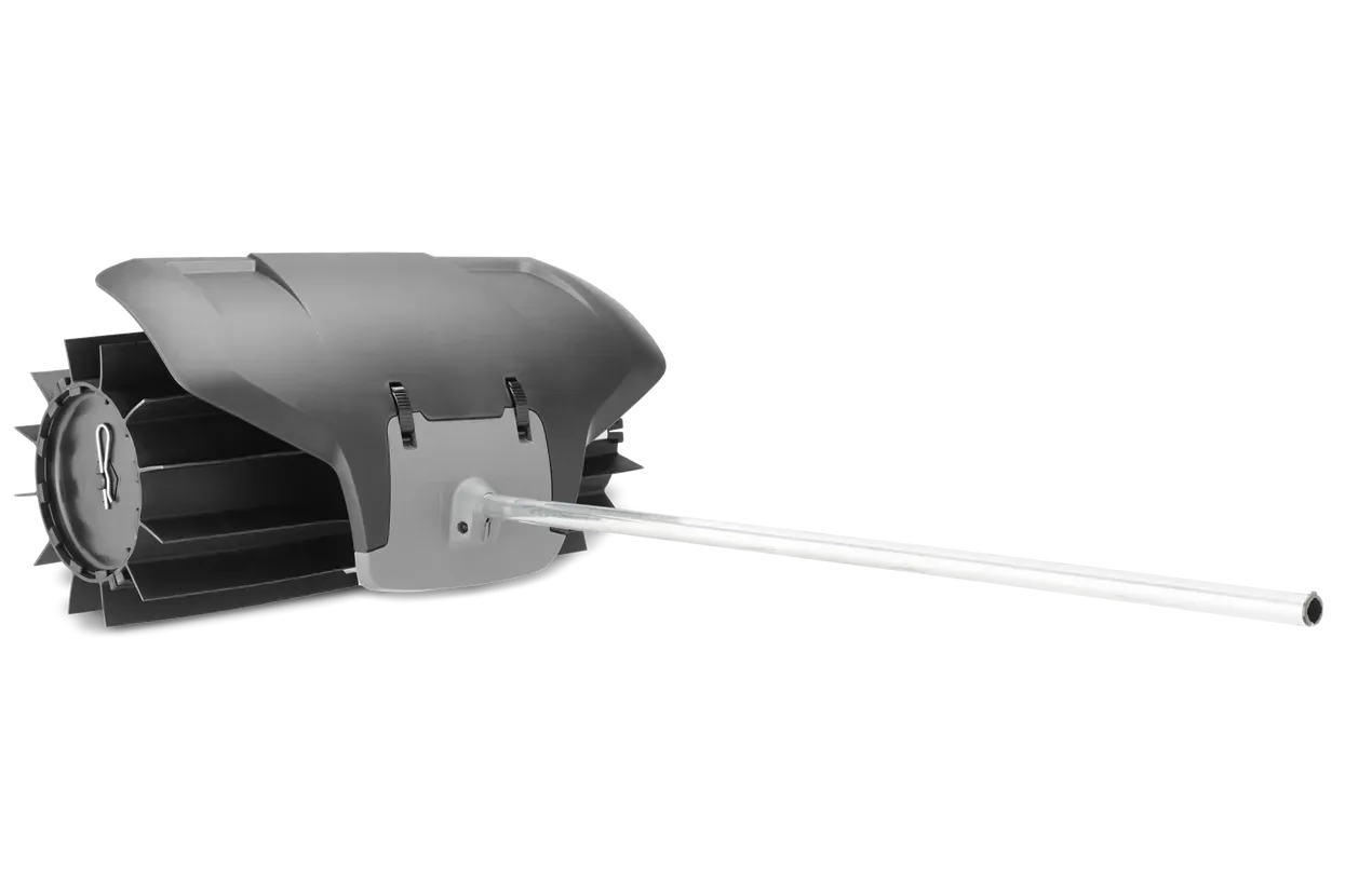 Pritrdilni nastavek za kombinirane produkte. Gumijasta metla z veliko kapaciteto, ki čisti pesek s poti, dovozov in travnikov. Vključen je ščitnik. Premer gredi 24 mm.