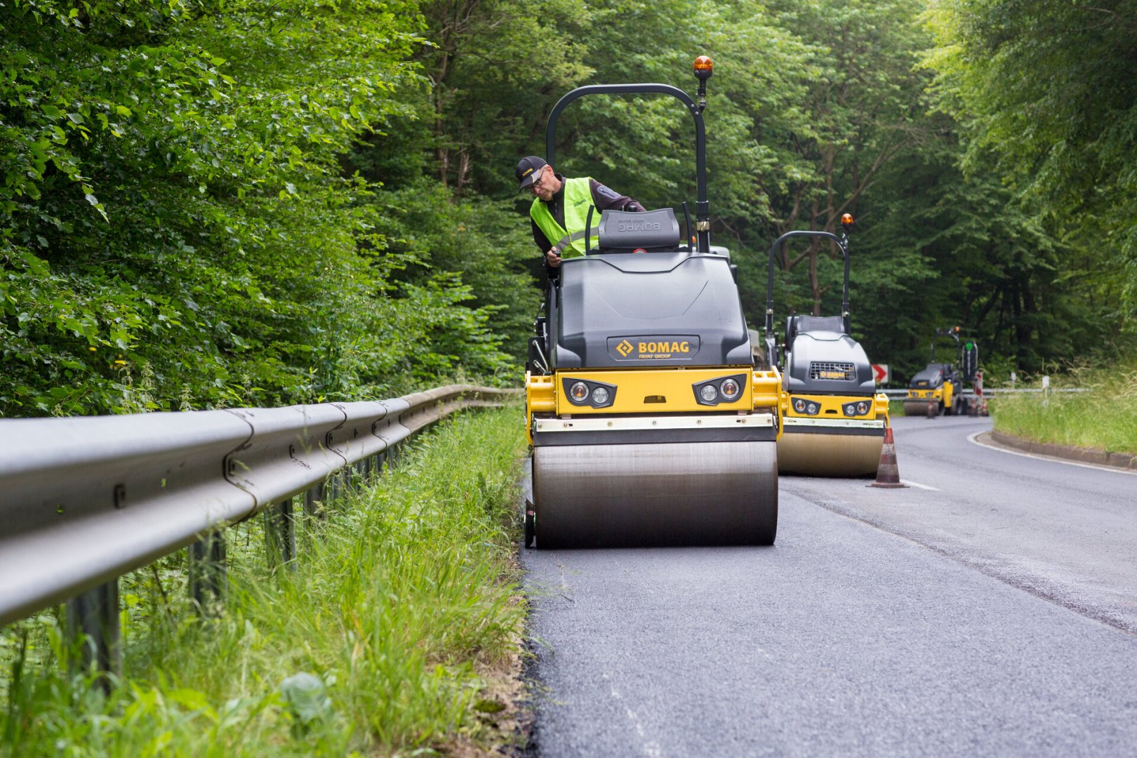 BOMAG BW 120 ponuja delovno širino 1200 mm, kar omogoča hitro zgoščevanje velikih površin. To še posebej pride do izraza pri delih na cestah, parkiriščih in drugih projektih, kjer je potrebna visoka produktivnost in enakomerno zgoščevanje.